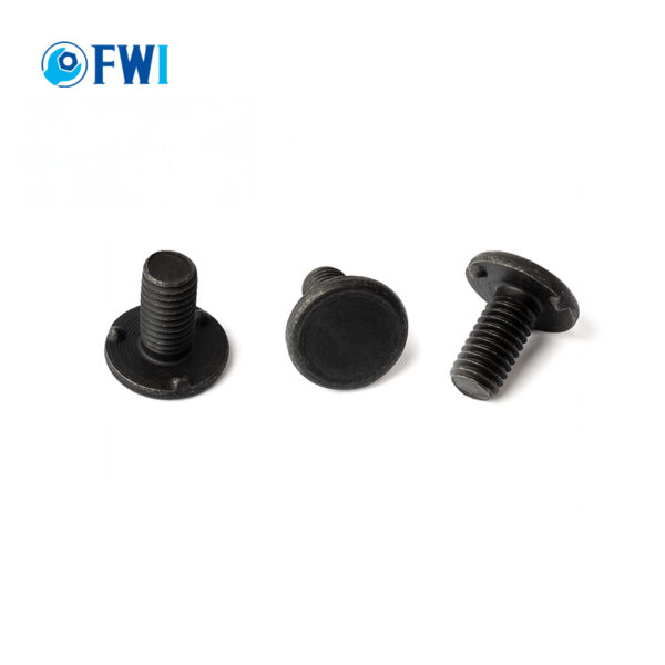 Plow bolts are heavy-duty fasteners with a flat, countersunk head that sits flush with the surface. They are employed in applications requiring a smooth finish, such as on plow blades and heavy machinery. The square neck under the head prevents rotation during tightening, ensuring a secure connection that endures high impact and abrasion.