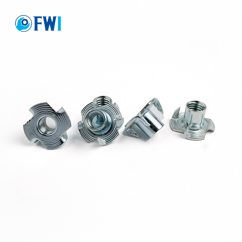 T-nuts are fasteners with a flat base and prongs that embed into wood or metal, providing secure threaded anchor points. Commonly used in furniture and cabinetry, they allow for easy assembly and disassembly of components.